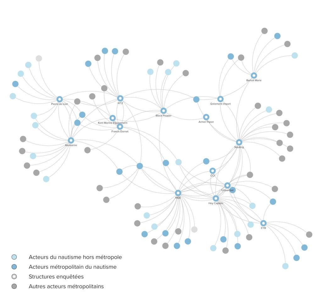 En bleu les acteurs du nautisme, pris dans une acceptation très large, en gris les autres acteurs.