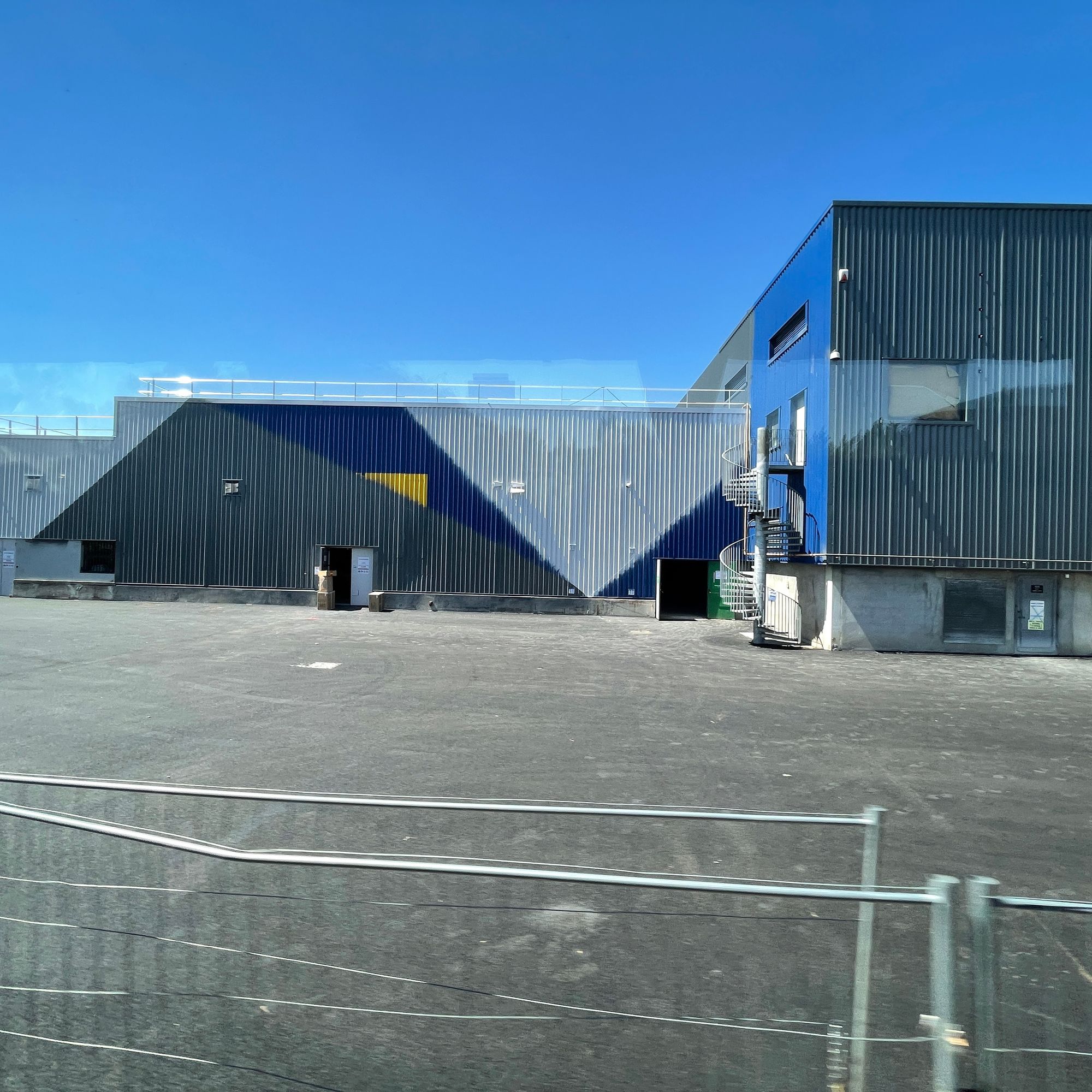 On nous avait promis son survol, mais on se retrouve dans un bus, à imaginer la vie de l’autre côté des murs antibruit de l’autoroute. Voici l’arrière-cour du Auchan avec ses réserves incendie, ses poubelles et ses quais logistiques. IKEA et Leroy Merlin se sont déjà fait la malle, constituant peut-être le front avancé de l’obsolescence commerciale. Le vaste projet imaginé pour prendre le relais a lui aussi été abandonné. Alors la friche du Leroy Merlin sera déconstruite, et l’ancien IKEA s’invente un avenir en changeant de couleurs.