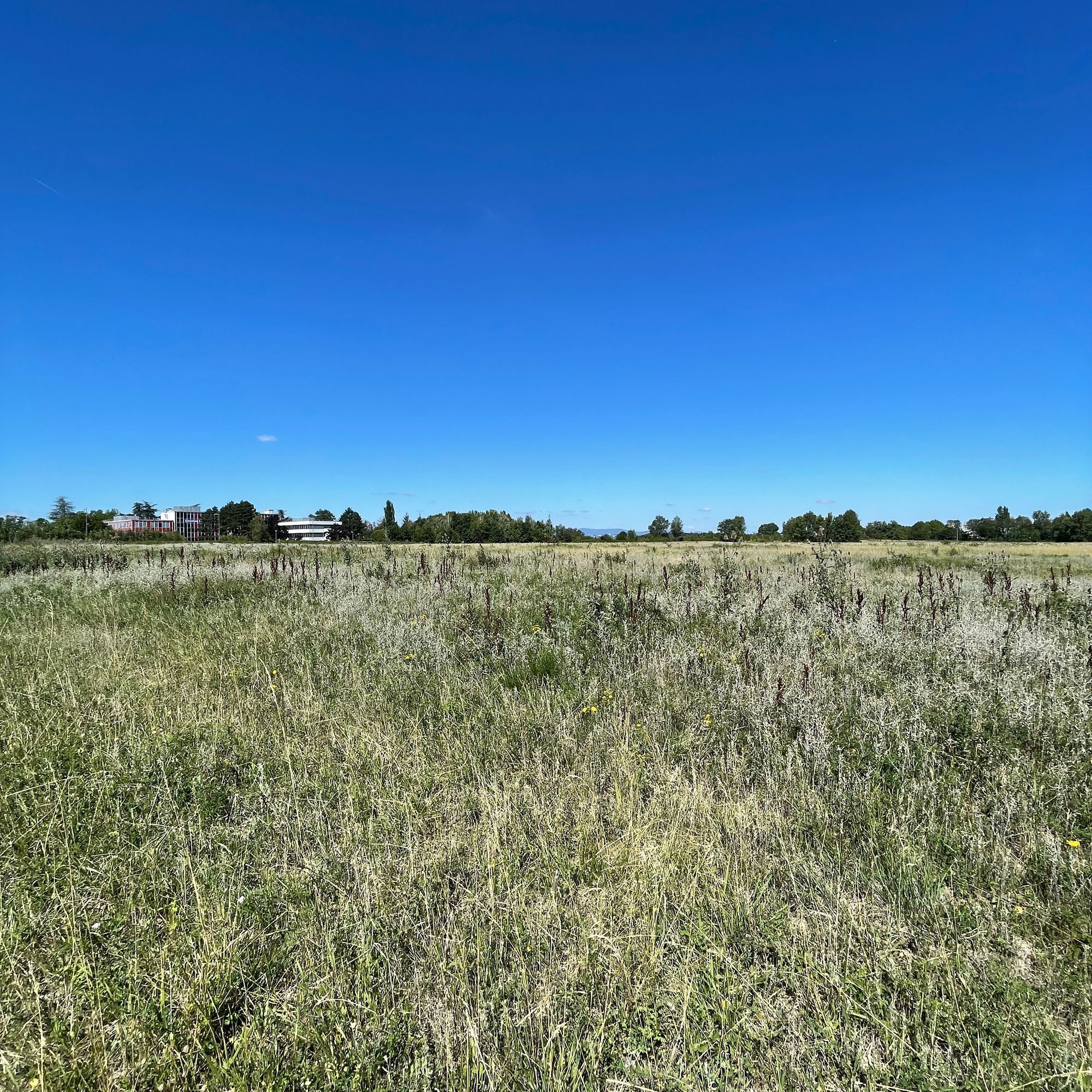 Un bassin de rétention des eaux pluviales, un immeuble de bureau, un parking et puis un champ. C’est le bout de la route. Il ne manque que le panneau « ici prochainement » planté dans cette prairie de treize hectares magnifiquement positionnés au cœur du quartier. Sur la carte, ce n’est qu’une inoffensive tache verte, mais c’est pourtant le front pionnier de la ville, sur lequel les voisins lorgnent. Et si tout ça restait vert ? Faut-il renoncer à une faim constructive, vieille de plusieurs des décennies ? Le projet urbain retient pour le moment son souffle, avec des bouts de rues déjà tracées qui n’attendent qu’à se prolonger.