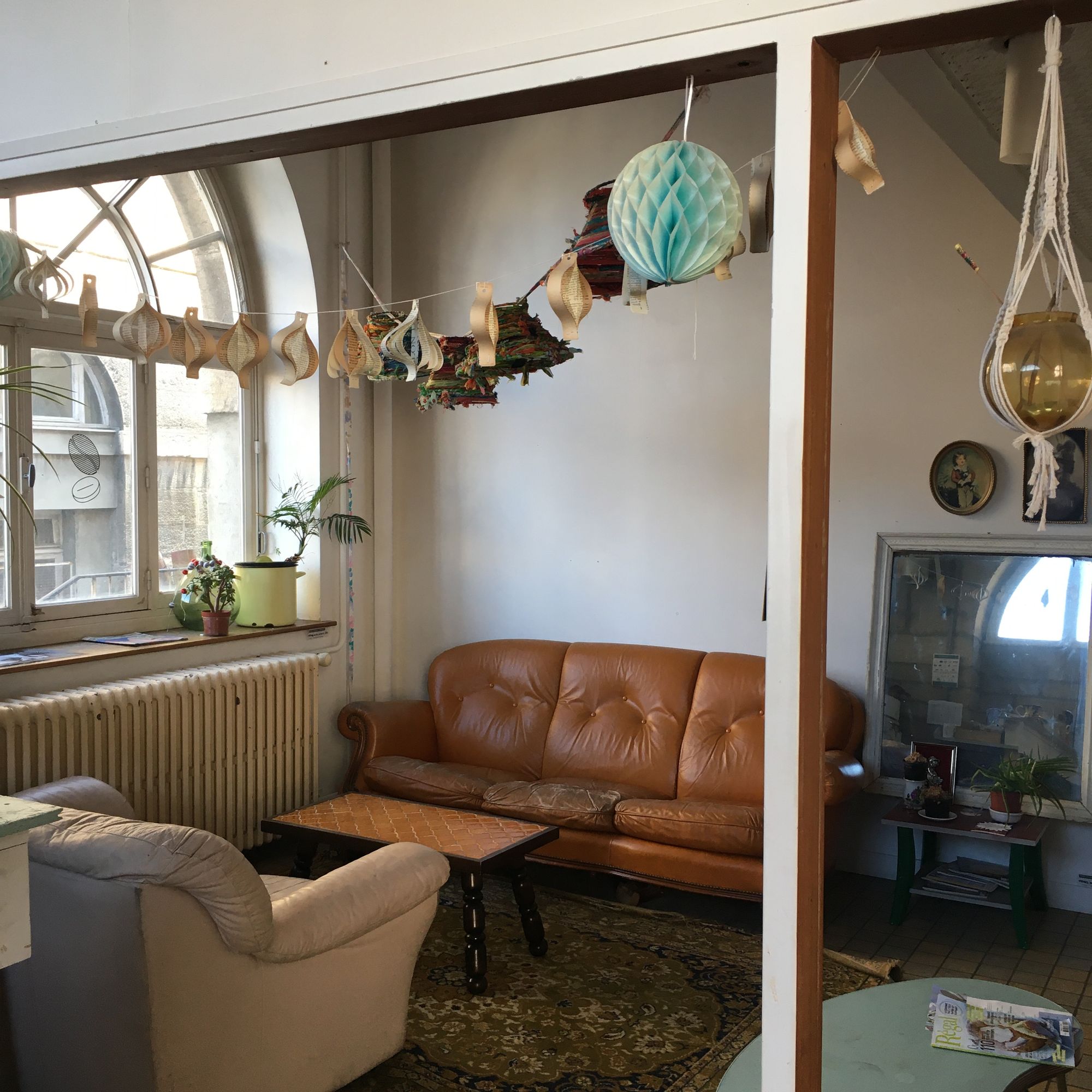 C’est avec beaucoup d’intérêt que nous avons pu parcourir les salles réinvesties par toutes sortes de corps de métiers. Une décoration est pour le moins décousue, des panneaux peints à la main, des néons d'époque et des escaliers en pierre. S'ajoute du papier kraft, des citations philosophiques collées entre chaque porte et Febee, la gardienne du bâtiment qui nous accueille. Du mobilier de récup’, chiné aux quatre coins de la ville, ponctue les couloirs et apporte une touche de convivialité. On vous emmène donc à la rencontre de ces pionniers pour comprendre les tenants et aboutissants de la création de ce nouveau lieu, suivie par Febee, le chien mascotte de Hôp hop hop (que serait un tiers-lieu sans son chien iconique?) !