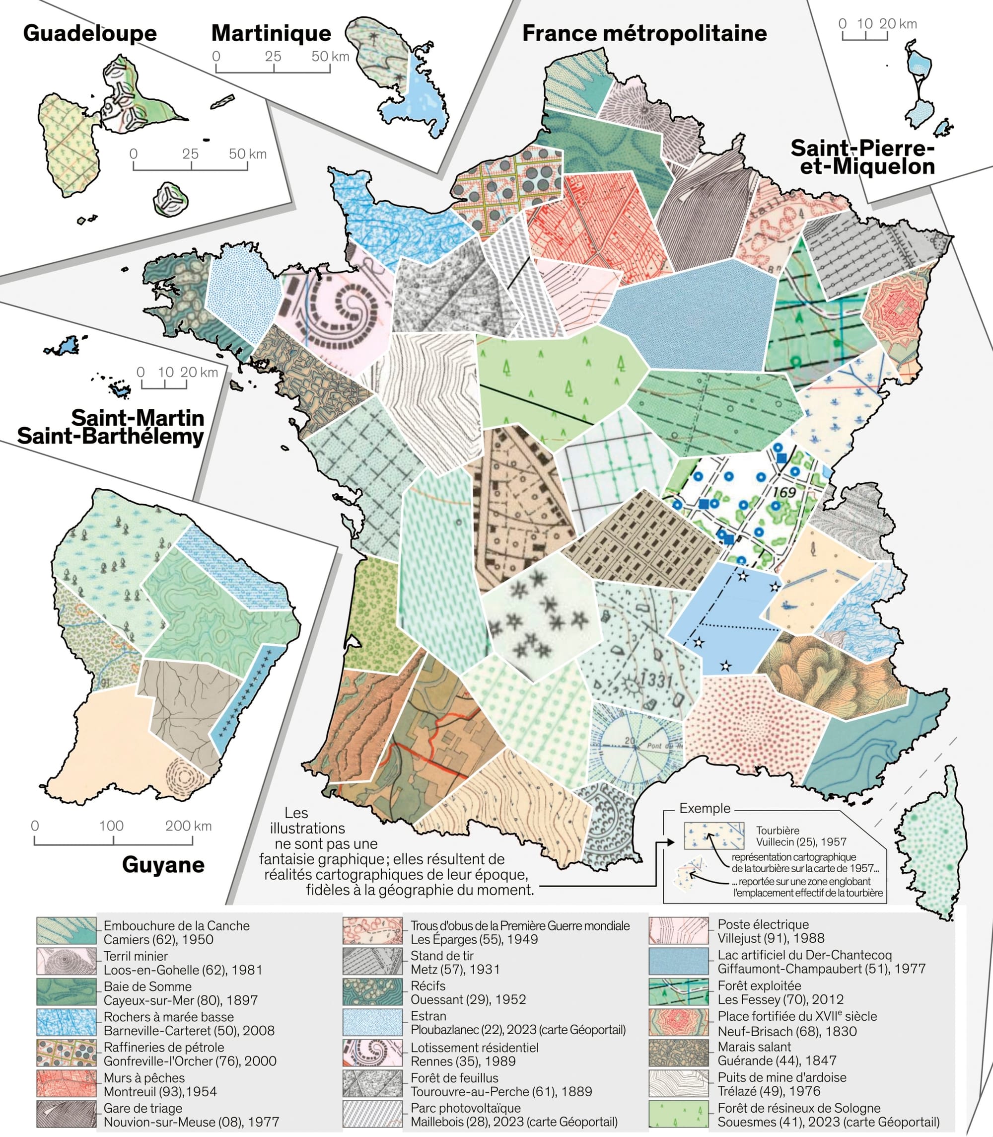 🗺️ Cartographier l’anthropocène. A l’heure où l’on s’écharpe sur la définition et la mesure de l’artificialisation, une plongée dans l’Atlas sur l’occupation des sols de l’IGN permet de prendre un peu de hauteur. Tellement qu’on a presque le vertige : comment un seul objectif (celui de zéro artificialisation nette) et a fortiori un seul outil de mesure pourraient-ils rendre compte de tous les phénomènes biophysiques qui sont à représenter ? Types d’arbres, cycle de l’eau, énergies renouvelables, parcelles agricoles, densité du bâti, risque de submersions… Le sol est bel et bien un bien commun, mais comment faire carte commune ? Cela semble impossible, c’est pourquoi l’IGN produit des atlas. Ce tome 2 de la série Cartographier l’anthropocène illustre les enjeux environnementaux liés à l’occupation et l’usage de nos sols. Cet atlas souligne tout le potentiel à la fois pédagogique et esthétique des cartes, même si on reste sur une vision surfacique et superficielle des choses. Disponible gratuitement en ligne