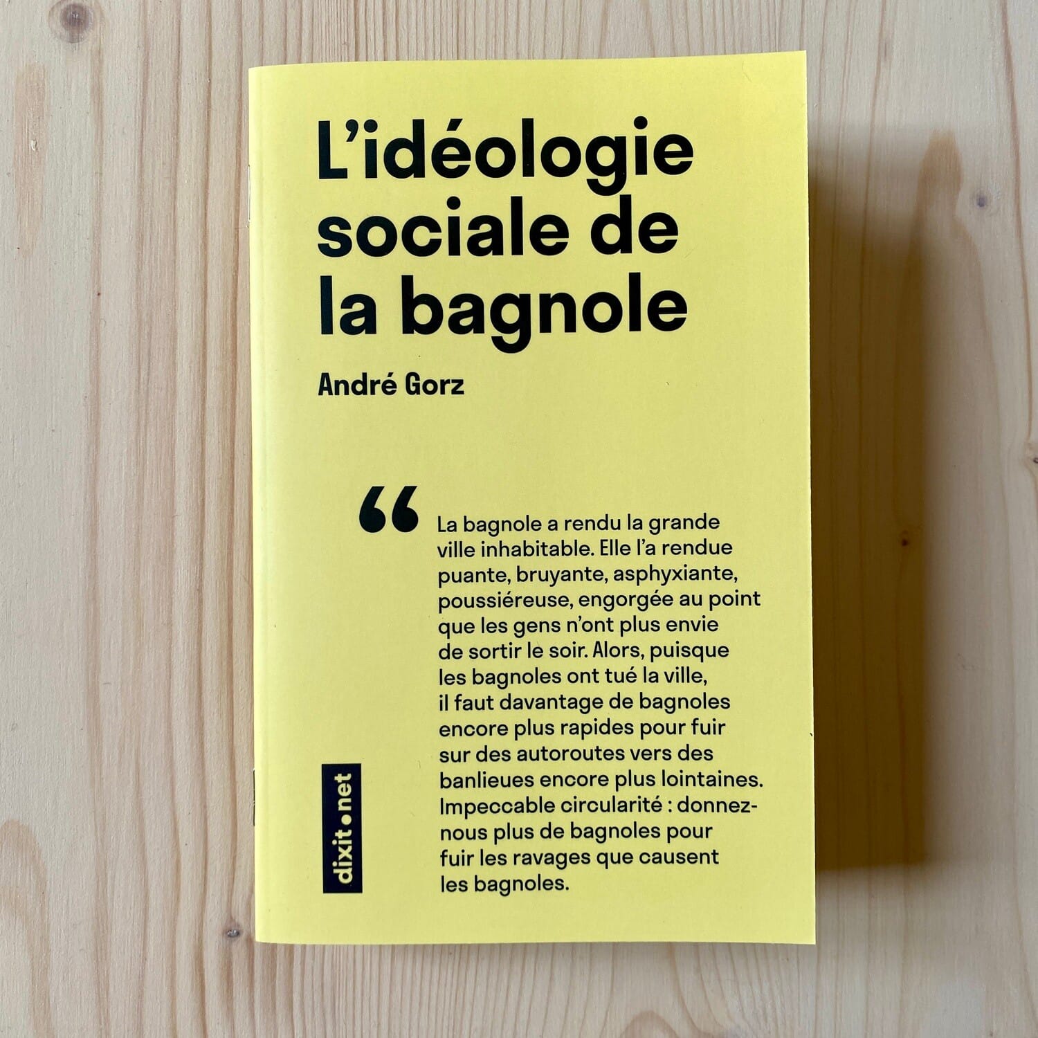 "La bagnole a rendu la grande ville inhabitable. Elle l’a rendue puante, bruyante, asphyxiante, poussiéreuse, engorgée au point que les gens n’ont plus envie de sortir le soir. Alors, puisque les bagnoles ont tué la ville, il faut davantage de bagnoles encore plus rapides pour fuir sur des autoroutes vers des banlieues encore plus lointaines. Impeccable circularité : donnez-nous plus de bagnoles pour fuir les ravages que causent les bagnoles."
