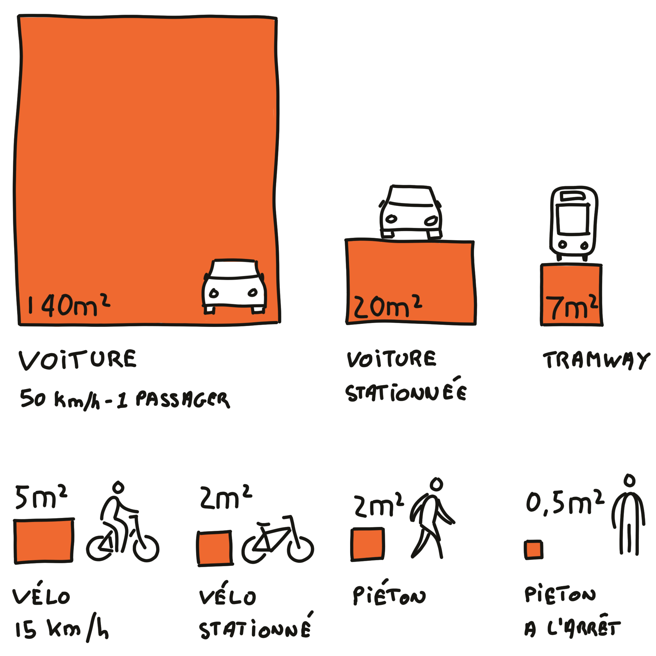 Face aux micromobilités, la voiture ne fait pas le poids. Ou justement si. Là où la voiture – même électrique – pâtit de son embonpoint croissant, vélos et trottinettes bénéficient d'un rapport poids-puissance exceptionnel : il les rend beaucoup plus efficaces énergétiquement. Autres atouts, leur caractère non émissif et leur moindre dangerosité pour les autres utilisateurs de la ville. Mais c'est leur faible emprise au sol qui en fait des outils de mobilité exceptionnels. Car l’unité de la ville n’est certainement pas le litre de gasoil, le kilomètre par heure, ni même le kilowatt. C'est bien le mètre carré. Car la ville est finie, et l'espace public plus encore.